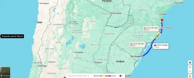 Imagem do google maps com trajeto entre Rio Grande e Beto Carrero